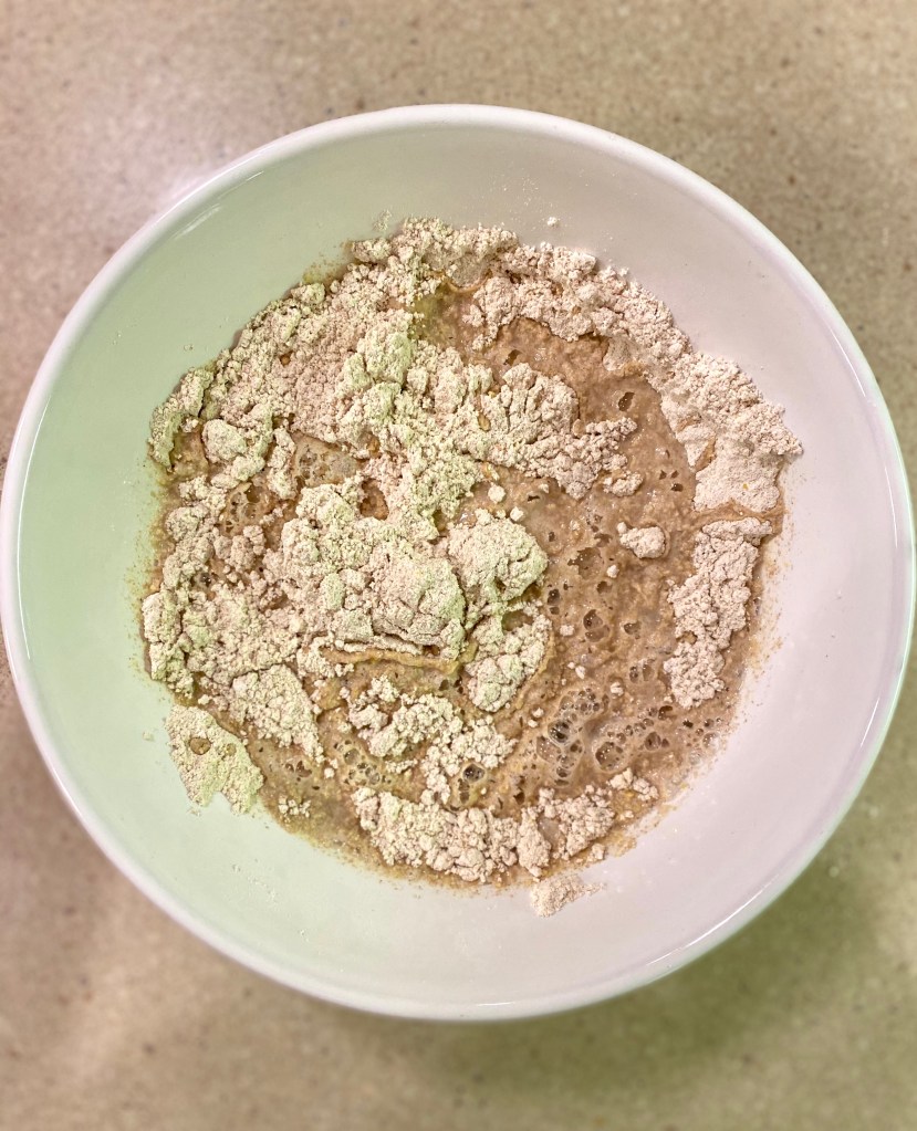 when we got home from the beach, i wanted to get started cooking so we could have dinner and i would have food for the rest of the week. i started cooking brown and sweet rice, from amy chaplin’s cookbook. i also now have some tempeh in the fridge marinating with a dijon mustard & apple juice marinade, which i’ll cook up today or tomorrow. while the rice cooked, i sliced some sungold cherry tomatoes and a cucumber, and for dinner we had the brown rice parsley salad with seeds, also from amy chaplin’s cookbook. and last but not least, i mixed the flour, cornmeal, salt, dry yeast, and water so they could begin fermenting overnight for the sesame-spelt bread. now, i will be able to cook it this morning using some of the leftover brown and sweet rice. the dough just needs to be mixed with the brown and sweet rice, followed by a quick rise, and then it will be ready for the oven!